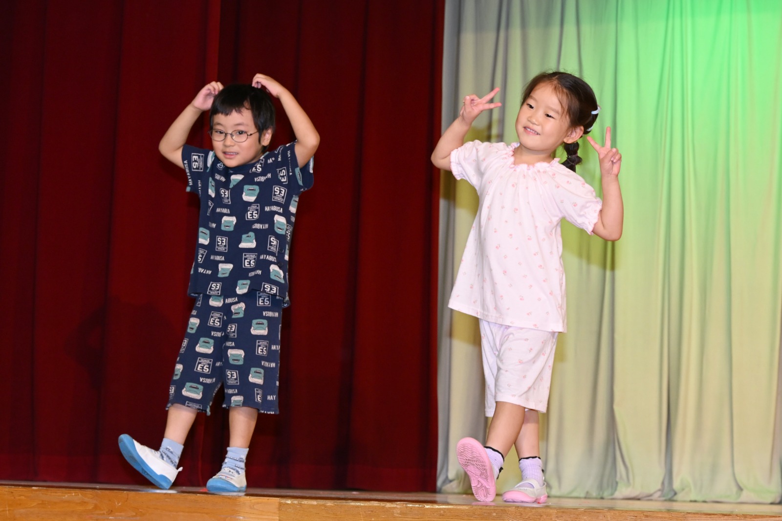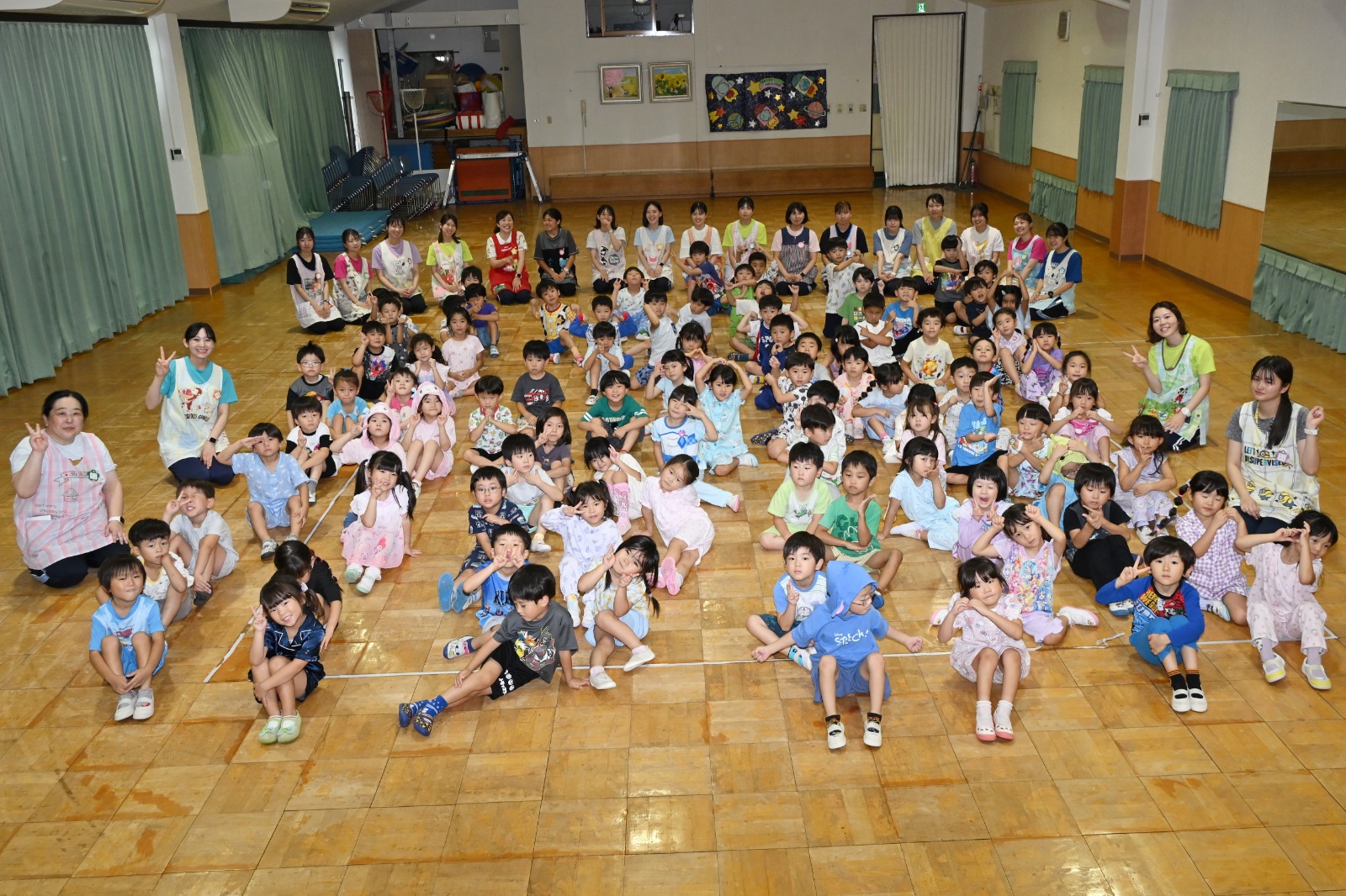 最後にみんなでホールでパジャマショーをしたりして、想い出いっぱいのお楽しみ保育でしたね(^^♪