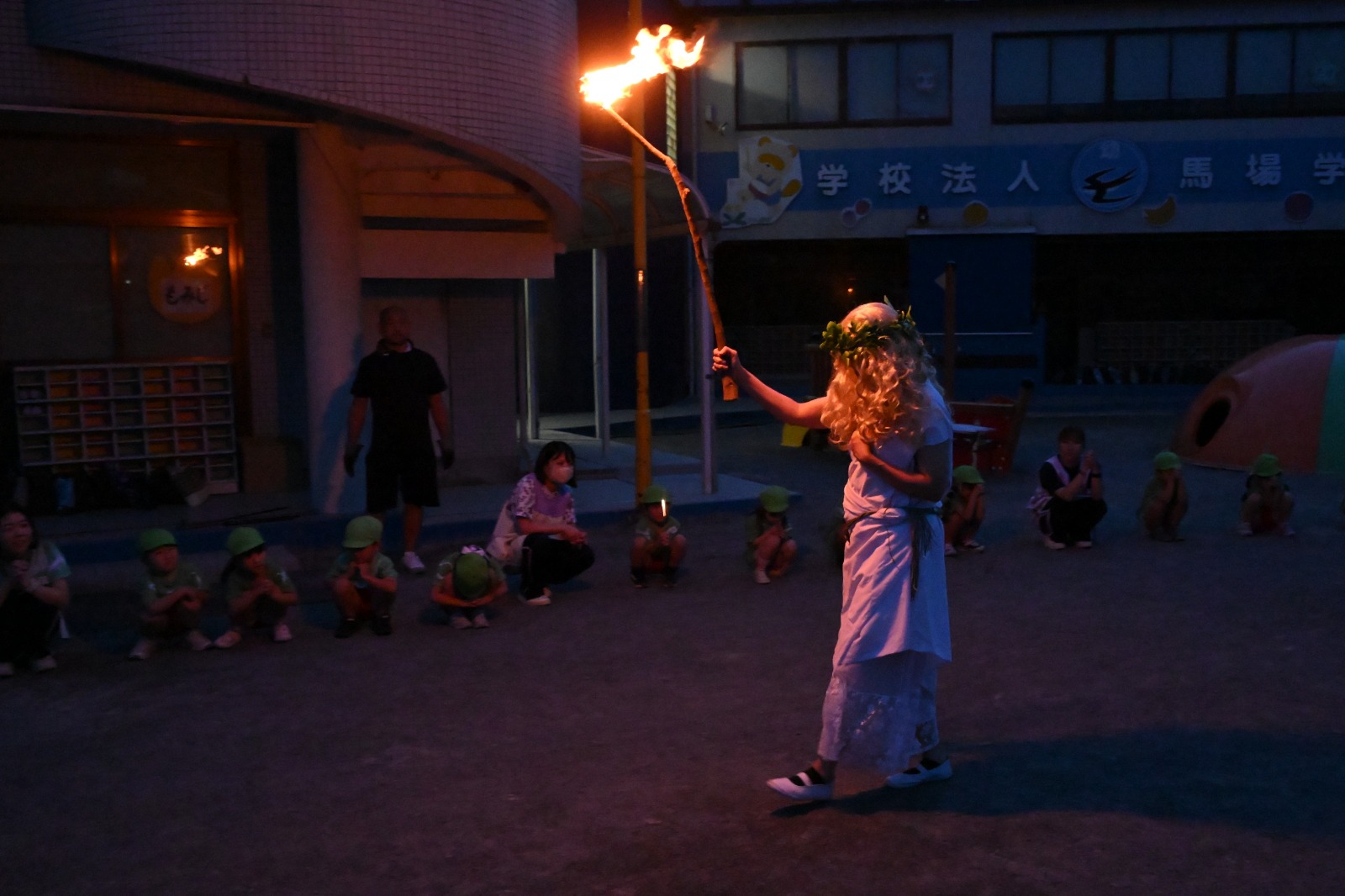 キャンプファイヤーでは火の神様登場😇🔥燃え盛る火を囲んで歌ったりフォークダンスをしたり、最後は花火に歓声!!