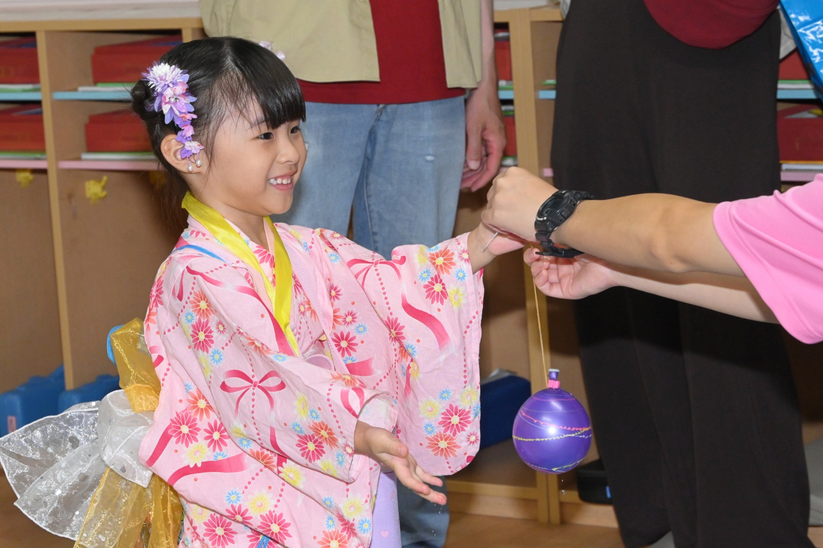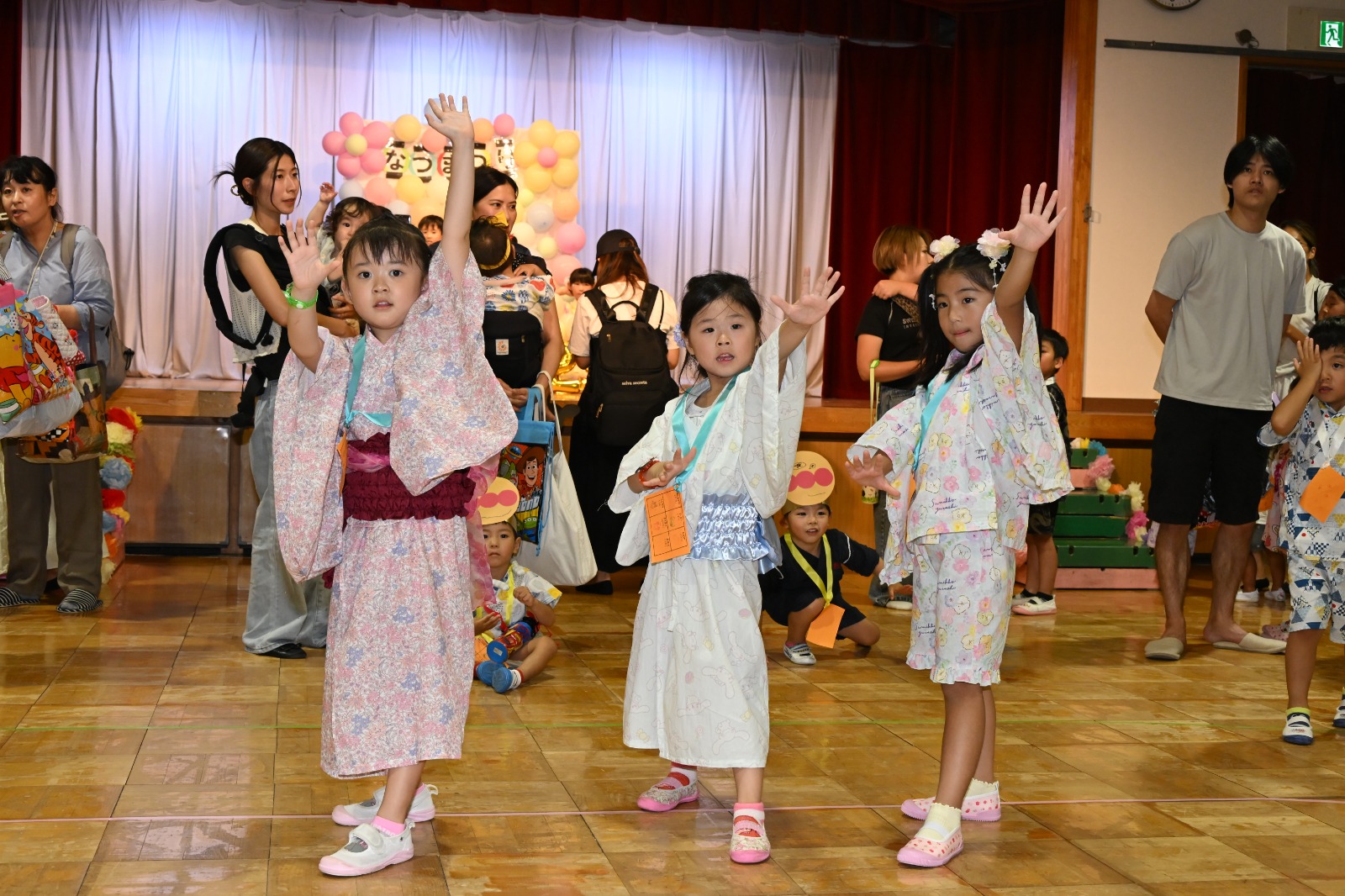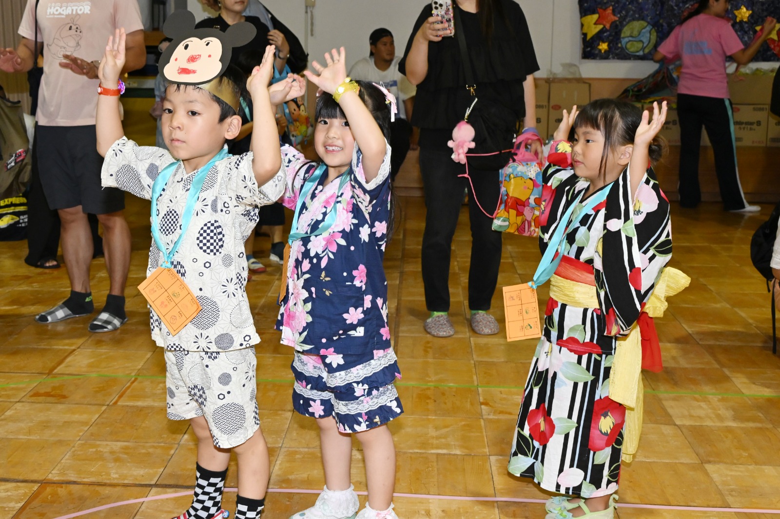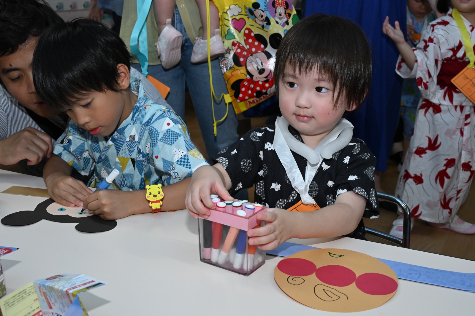 室内遊びは、ヨーヨー釣りや的当て、輪投げにおめん作りなどなど盛りだくさん!